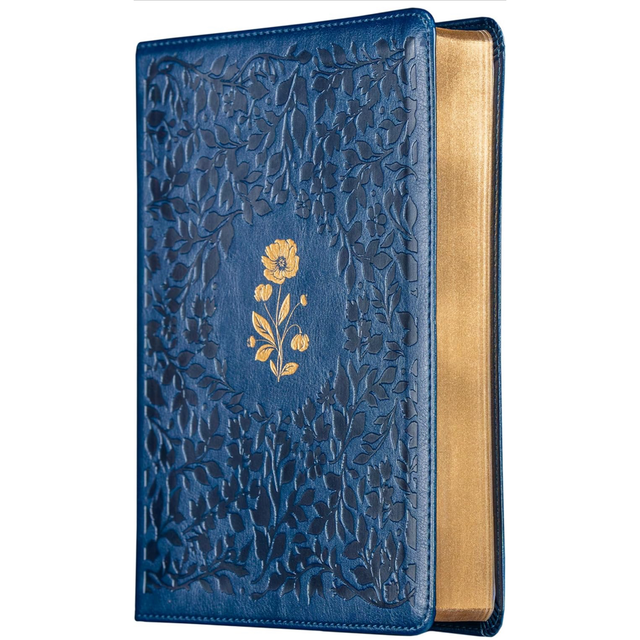 Bíblia ACF com espaço para anotações, Couro-soft azul com flores em baixo relevo, Leitura Perfeita