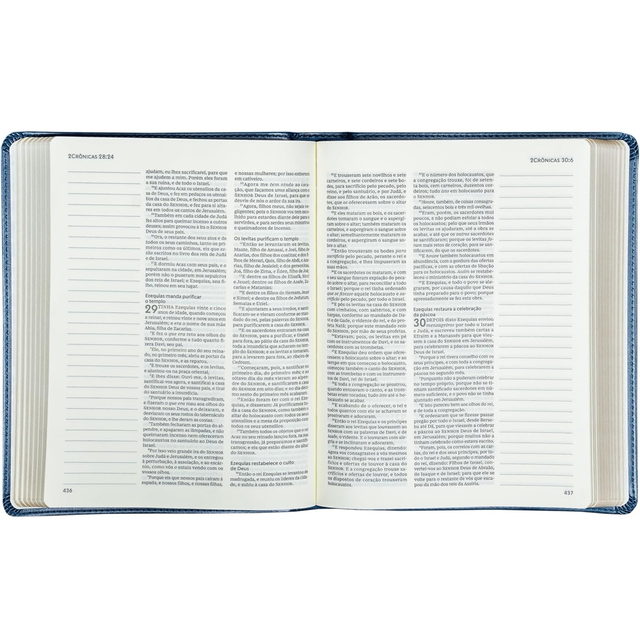 No interior, possui letra no tamanho tradicional e linguagem Almeida Corrigida Fiel.