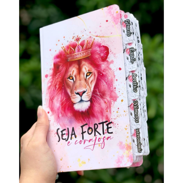 Bíblia Sagrada Leão Seja Forte Com Abas Letra Gigante Capa Dura Arc Com Harpa e Índice