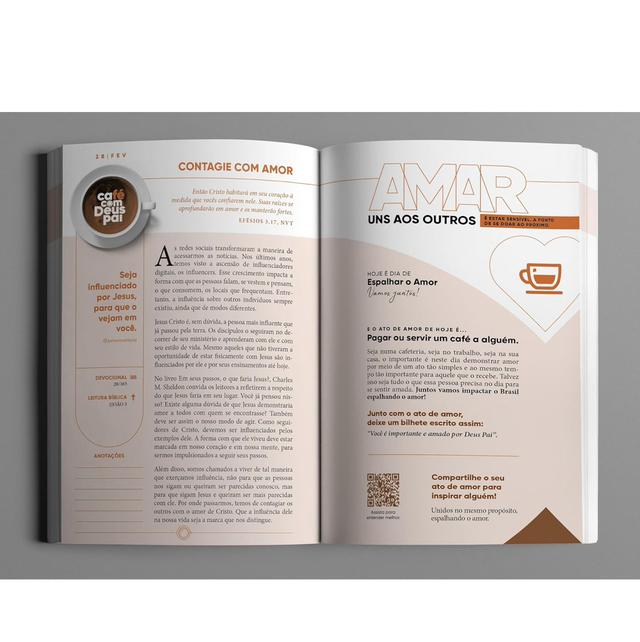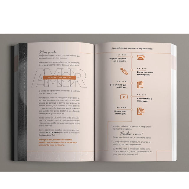 Aqui tem as respostas para todas as suas aflições São 365 mensagens que te levarão a uma jornada com devocionais diários ao longo do ano, onde você é convidado a ter um encontro com Deus Pai. As páginas interativas irão envolvê-lo ainda mais nessa jornada, permitindo que você reflita, anote suas inspirações e compartilhe suas experiências. A cada dia, você encontrará uma mensagem única e significativa, especialmente selecionada para nutrir sua alma e fortalecer sua fé. Para tornar o seu dia ainda mais especial, frases inspiradoras são destacadas ao longo do livro, proporcionando motivação e encorajamento sempre que precisar. E para aqueles que desejam se aprofundar ainda mais na Palavra de Deus, também é incluso um plano de leitura bíblica, que o guiará por uma jornada de conhecimento e descoberta. Além de proporcionar um novo modo de apreciar uma xícara de café, este livro mostrará como a vida pode ser saboreada. Sim, Deus Pai deseja tomar café com você.