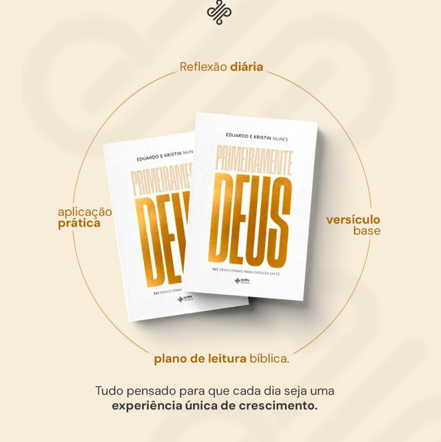 Diante de dias cada vez mais cheios e de rotinas cada vez mais agitadas, todos nós, em algum momento, já paramos para nos perguntar: “Por onde começo?”. A verdade, no entanto, é que se não priorizarmos o que realmente importa, acabaremos desviando o foco do lugar certo e perderemos a capacitação necessária para avançar. Foi pensando nisso que Primeiramente Deus nasceu! Neste devocional de 365 dias, os pastores Eduardo e Kristin Nunes trazem reflexões profundas e transformadoras para impulsionar seu desenvolvimento espiritual. Dia após dia, você será alimentado com verdades indispensáveis para crescer em fé, além de ser inspirado a aplicar, de forma simples e prática, aquilo que leu. Prepare-se para descobrir as surpresas que o esperam ao colocar seus encontros com Deus em primeiro lugar, todos os dias.
